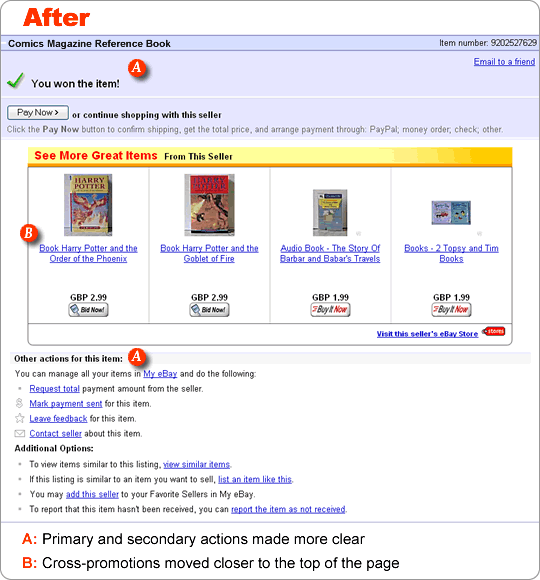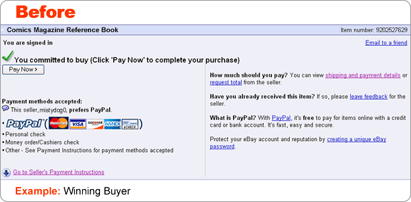 As we announced in December, we are enhancing our current End of Auction (EOA) and End of Transaction (EOT) emails. You will start to see these changes in the next few days. In the following few weeks after the changes have been made, PayPal will discontinue their Winning Buyer Notification emails. Members who registered their eBay ID and password with PayPal will have their custom messaging on their Winning Buyer Notifications transferred to the End of Auction emails automatically. More information about the enhanced emails can be found in our previous announcements directly below. To learn more about how to customize eBay’s End of Auction and Transaction emails, or to see an example of the new changes, please click here.