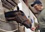 Jockey Jeremy Rose, right, kids Delaware Park's