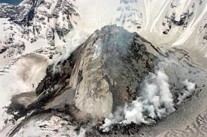 The newer lava dome, still growing, has severely warped the east arm of the glacier dramatically and the main part of the glacier has been slipping northward down the crater slope at about 4 feet a day, according to the U.S. Geological Survey.