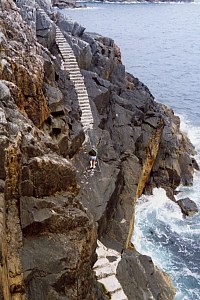 vertigo-inducing narrow ledges, to a second concrete platform.