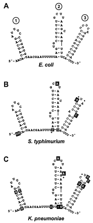 stem by one base pair are suggested in both the S.typhimurium and K.