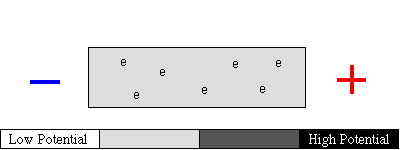 In the same way that positive charges move to regions of low potential, negative charges move to regions of high potential. An electric current is a flow of electrons from an area of negative potential to an area of positive potential.