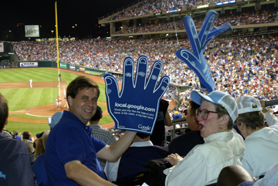 case, a big foam hand. Google Local.” The other side says “Go